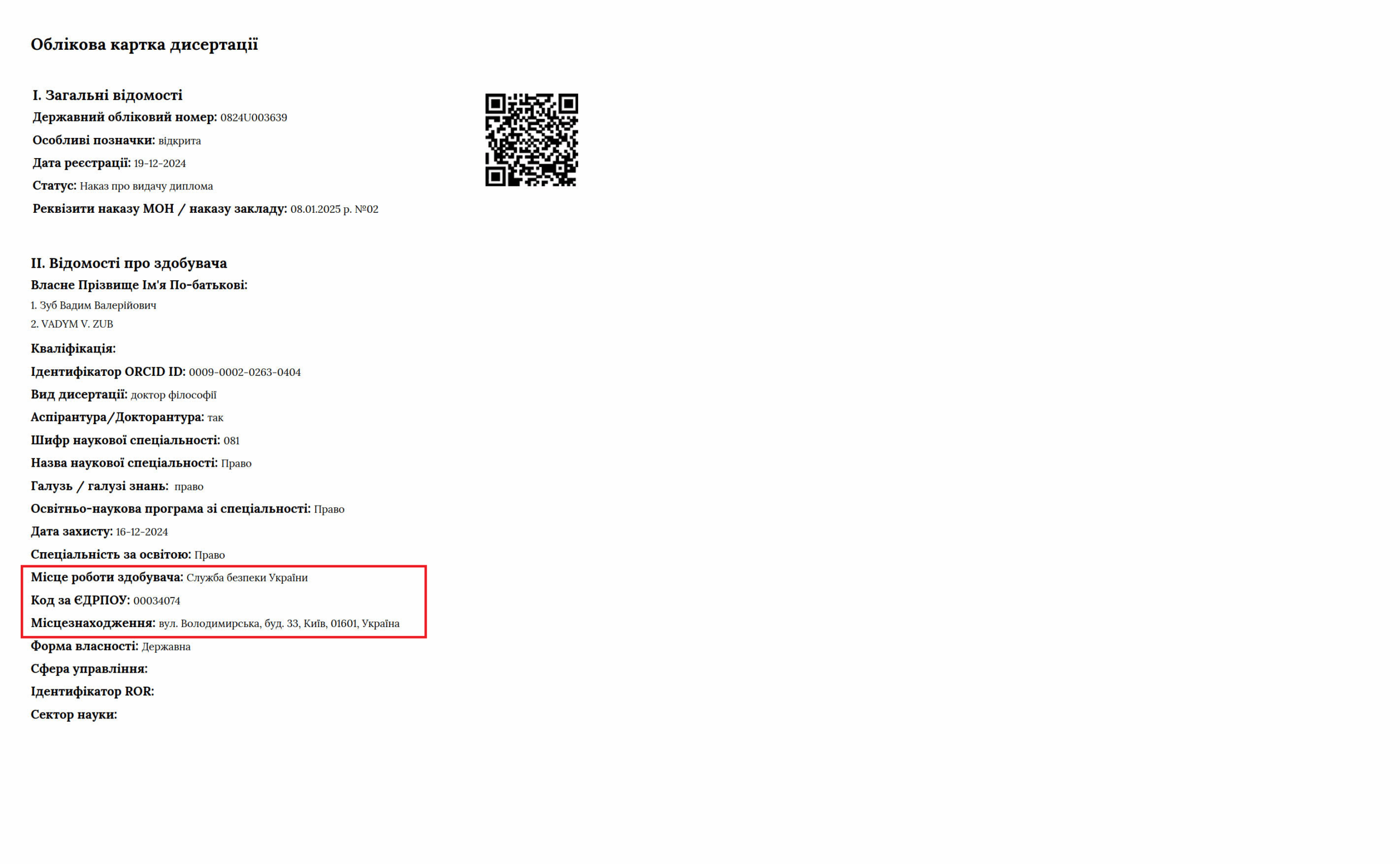 Це викликає цілком логічне питання: де саме і коли Вадим Зуб, як співробітник спецслужби, брав участь у бойових діях, і на якій підставі Чернівецький національний університет надав йому пільгу на оплату навчання за програмою, де офіційно не передбачено жодного бюджетного місця?