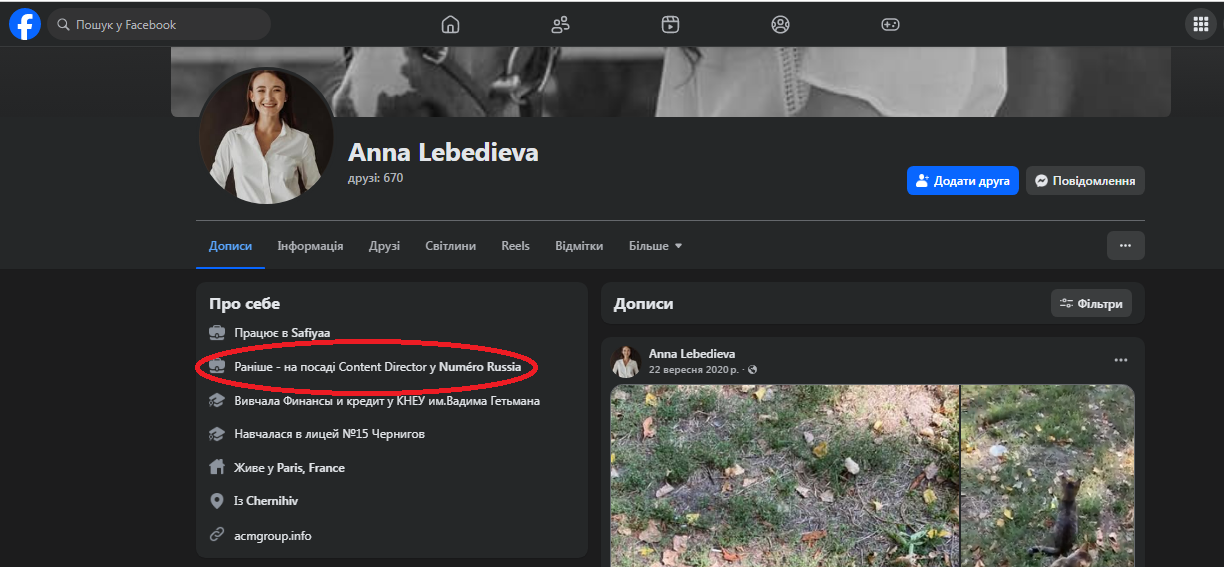 Якщо з комерційним консультуванням ще можна погодитися, то участь Тетяни Лебедєвої в «інформаційних послугах» залишається загадкою — принаймні доти, доки не згадати вже знайому читачеві доньку Анну. Саме вона відкрито зазначала на своїй сторінці у Facebook про співпрацю з проросійськими медіа в період із 2018 по 2020 рік.