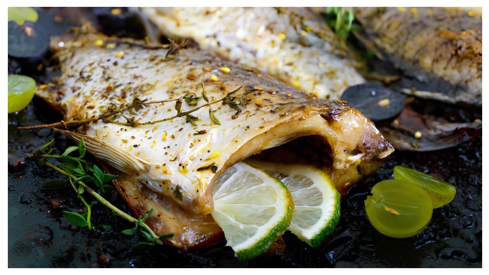 Ця страва поєднує ніжний смак риби зі свіжістю винограду та ароматом розмарину.